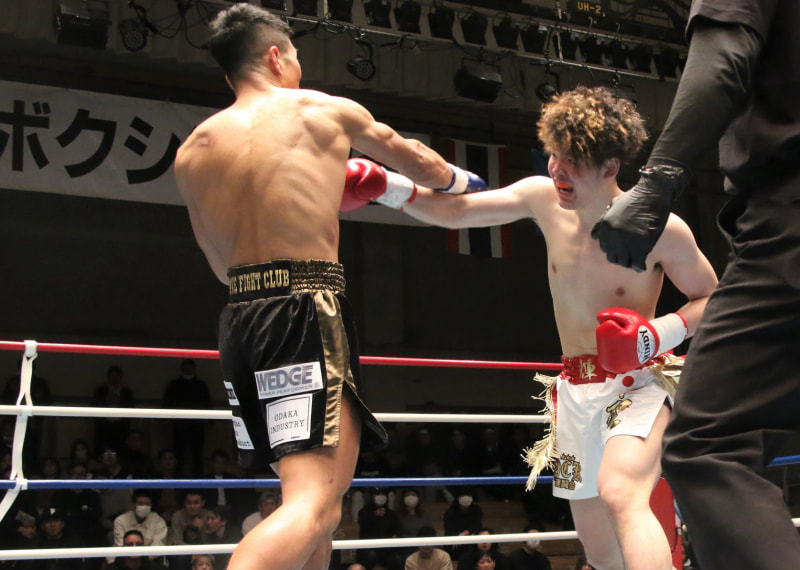 佐藤はカーフキックとパンチ連打で追い込んだ