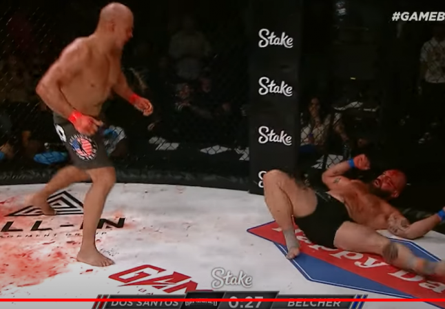 ドス・サントスの強烈左フックでベルチャーがダウン!@Gamebred Bareknuckle MMAより