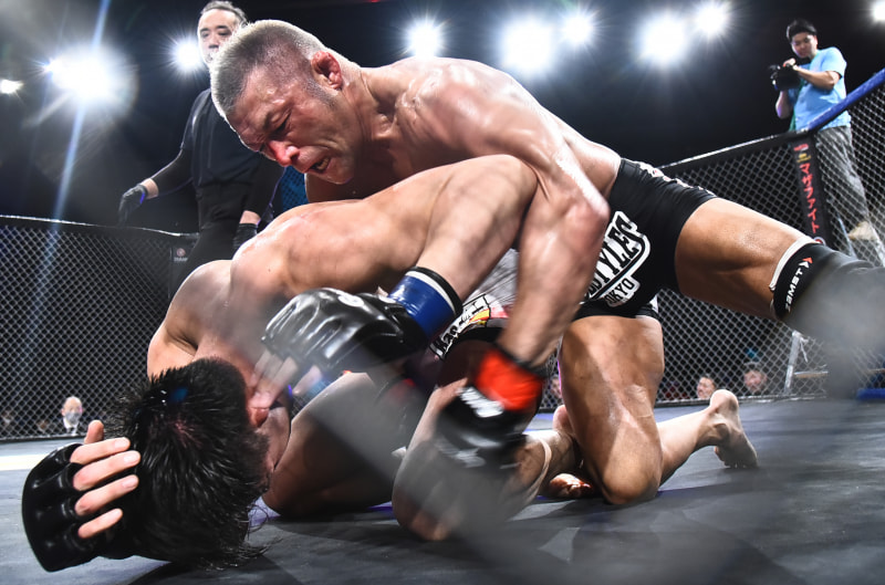 パウンド連打で青木忠秀(下)を追い込む櫻井隆多(上)