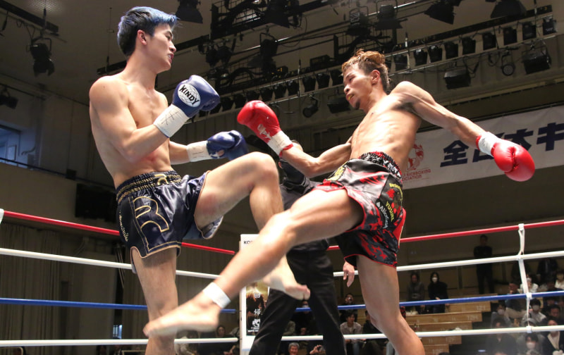 セミファイナルの鬼澤(右)と中村(左)のキッカー対決はドローに終わった