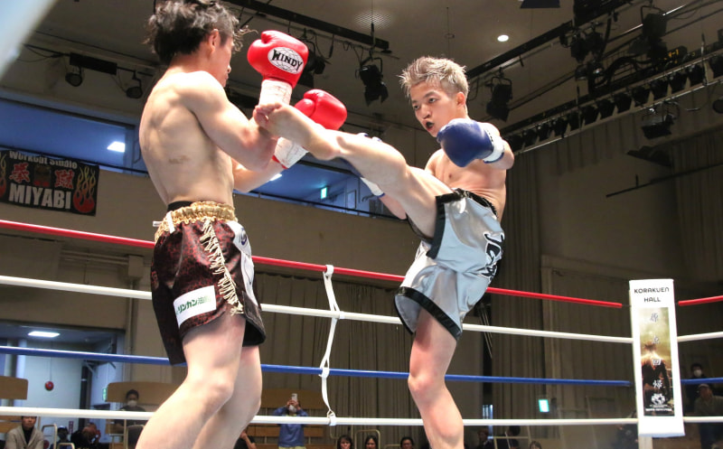 全日本キック協会旗揚げ大会は、栗芝代表の愛弟子の広翔(右)が勝利