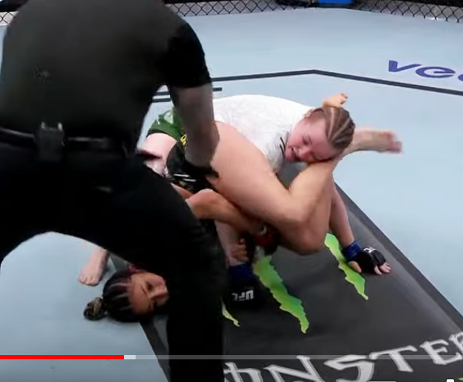 レフェリー がストップコール!アモリムが解除もこの後すぐに再開、コール(UFC JAPAN公式YOUTUBEより)