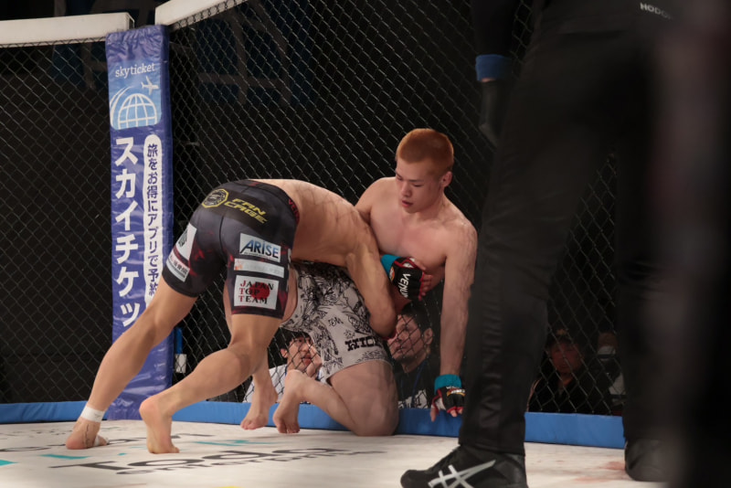 タックルを仕掛ける山本(左)