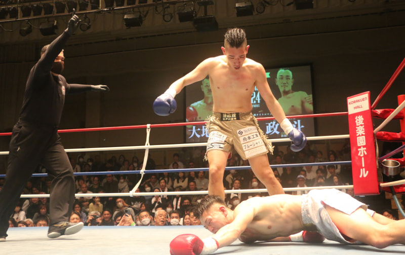 とどめの右で3度目のダウン、KO勝利した