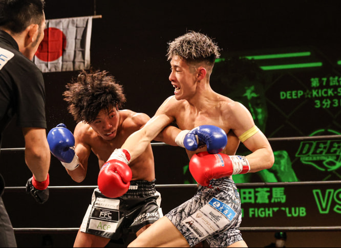 引退試合のセネガル(左)と、溜田が死力を尽くして打ち合う