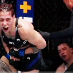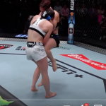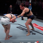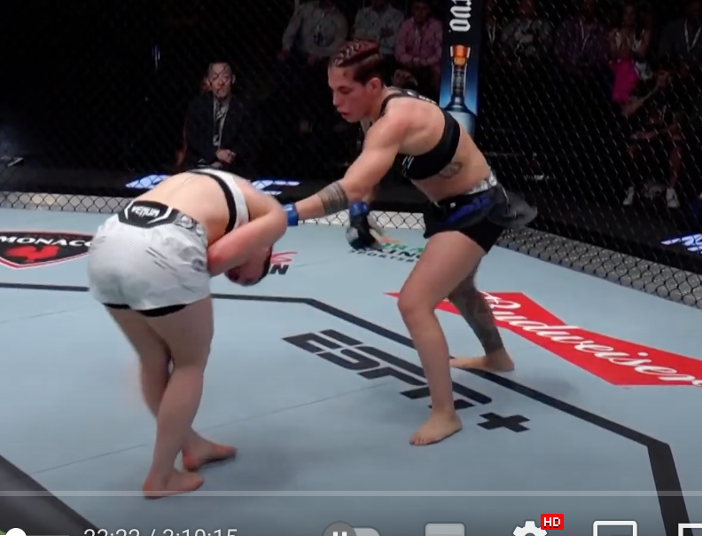 相手は悶絶でくの字に(UFC JAPAN公式YouTubeより)