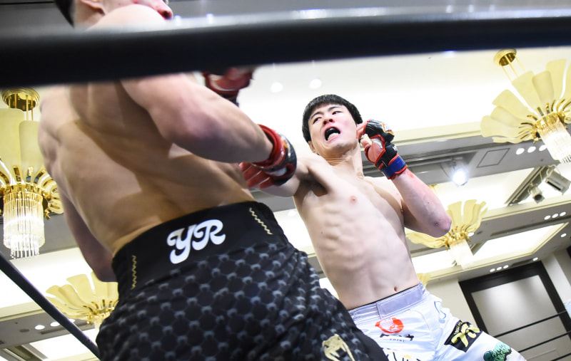 吉田陸(左)にTKO勝ちした切嶋龍輝(右)