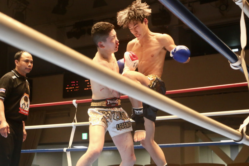星のこのヒザ蹴りがヒットすると、王者の鼻から一気に流血