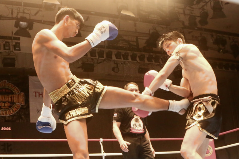 身長182cmのムエタイ戦士・コムキョウ(左)が王者・角谷(右)に完勝