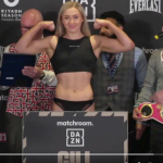 ダウンを奪い判定勝利、世界王者となったディクソン(左)@rhiannondixon_
