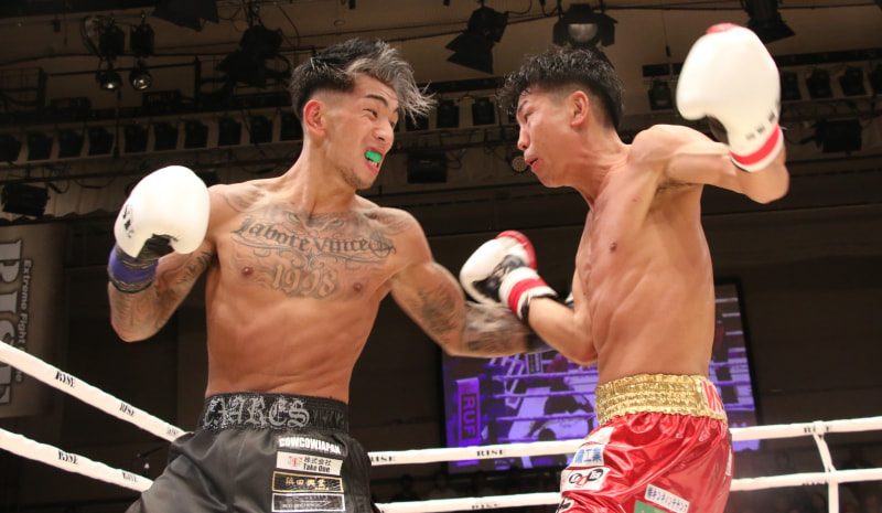 岩郷(左)が勝次(右)に判定勝ち