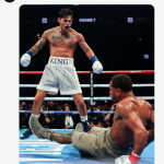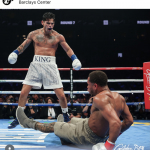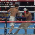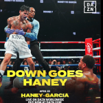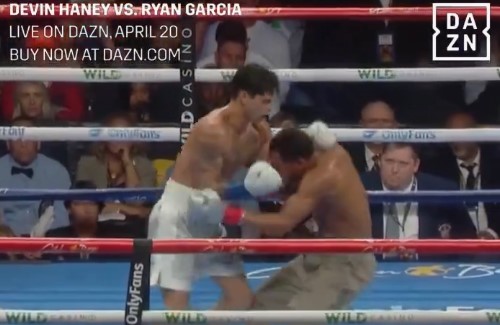ヘイニーのパンチがガルシアにヒット!(@DAZN Boxingより)