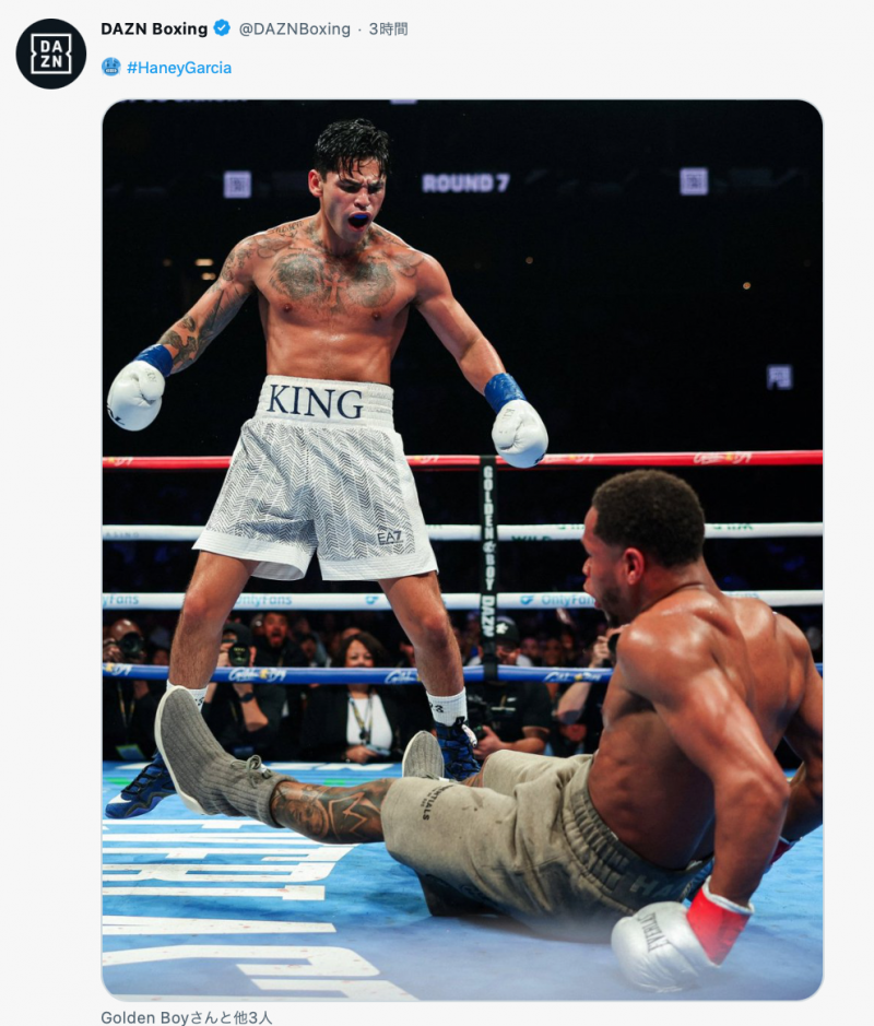 ヘイニーがダウンする瞬間(@DAZN Boxingより)