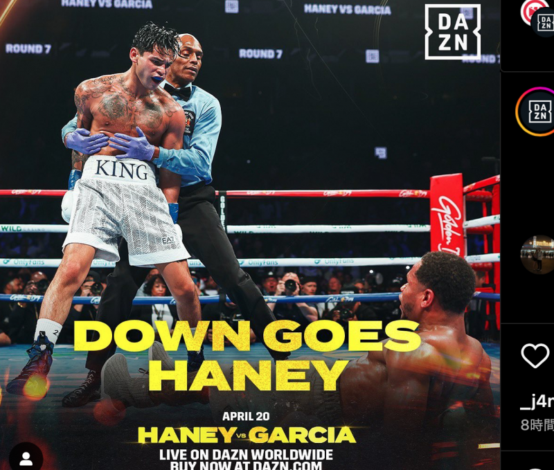 レフェリーに制止されるガルシア(@DAZN Boxingより)
