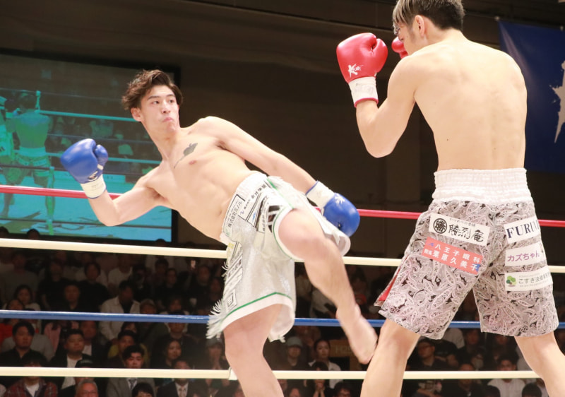 寺島は蹴りとパンチで攻撃