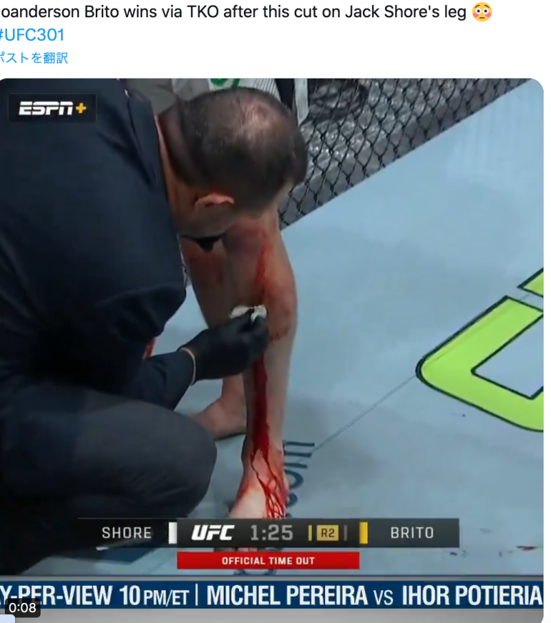 足がカットで大流血@espnより