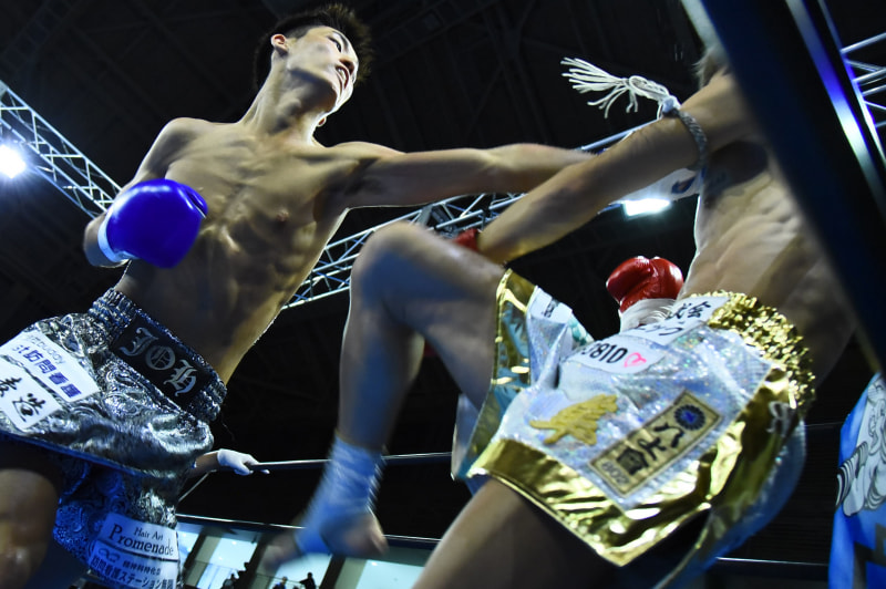 渡部隼(右)をTKOで下したJHO(左)