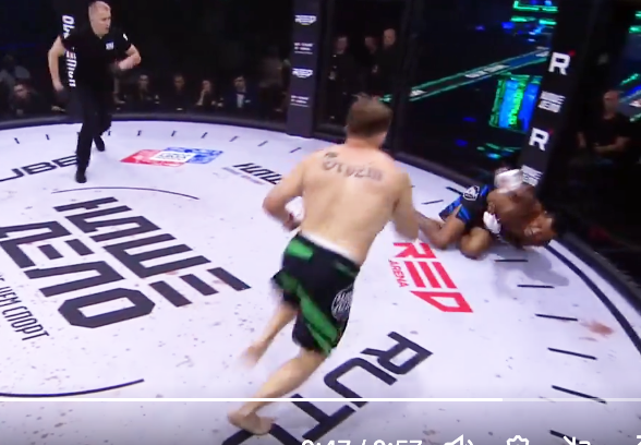 相手はケージまで吹っ飛び悶絶@Grabaka_Hitmanより