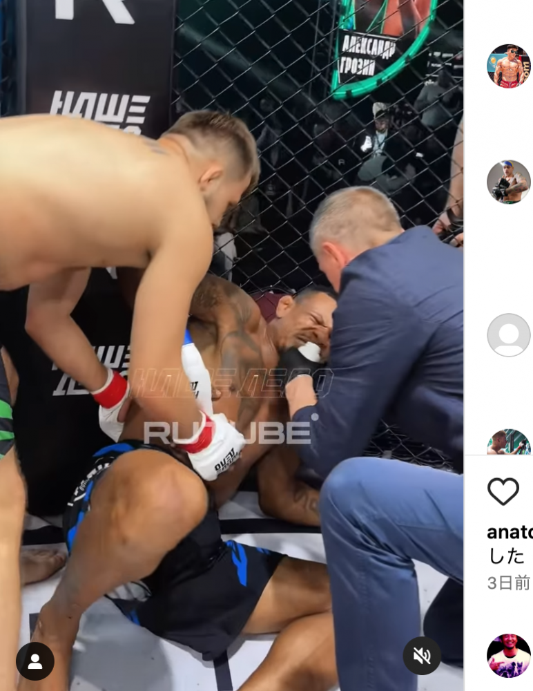 オリベイラはケージを降りる時も脇腹を押さえていた。肋骨が折れたか@nashedelo.fightより