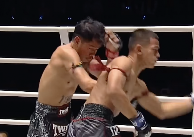 4、肘のアッカラデーが倒れる。フックが一瞬早かった(c)ONE