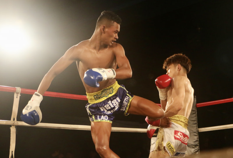 獣のような勢いでクンクメール戦士が老沼(右)を圧倒KO