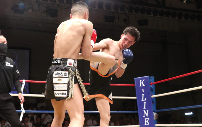 田中(右)は蹴りで対抗した