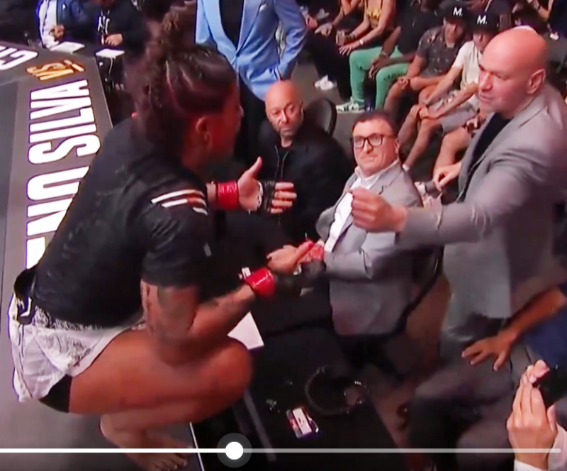 ホワイト社長に試合続行をアピールするシウバ©️UFC