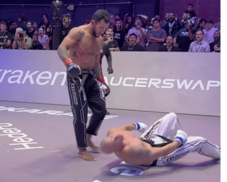 飛び二段蹴りが炸裂し相手は失神、豪快KOに! @karatecombat