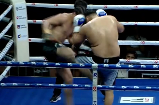 ローキックを連発するツヴェチカニン(左)(C)K-1