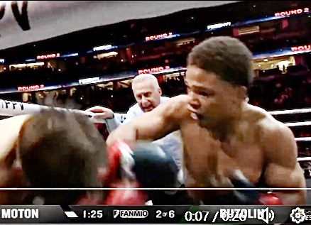 メイウェザー愛弟子モートン(右)が怒涛の連打でKO勝利 @curmelmoton1