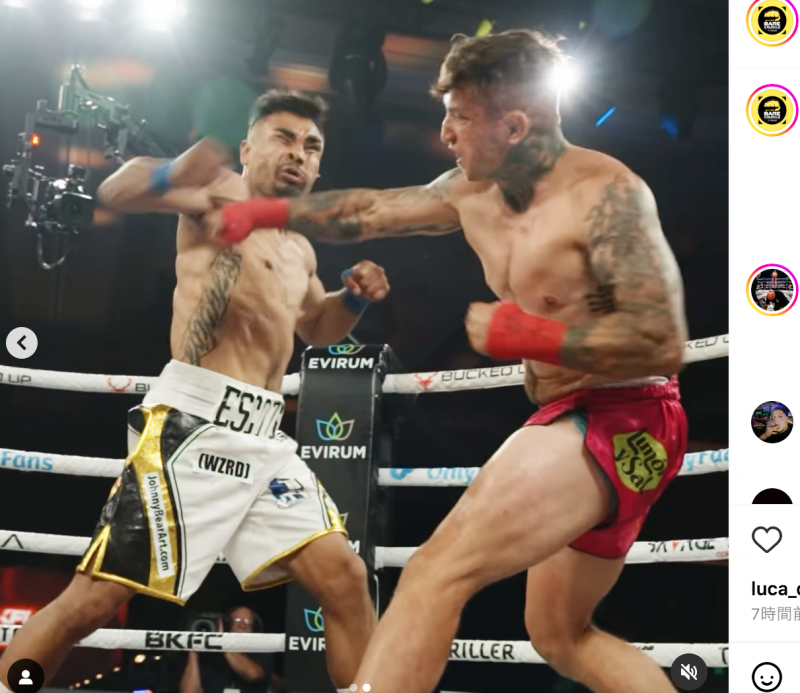 ドンピシャで相手の顔面をとらえる@bareknucklefcより