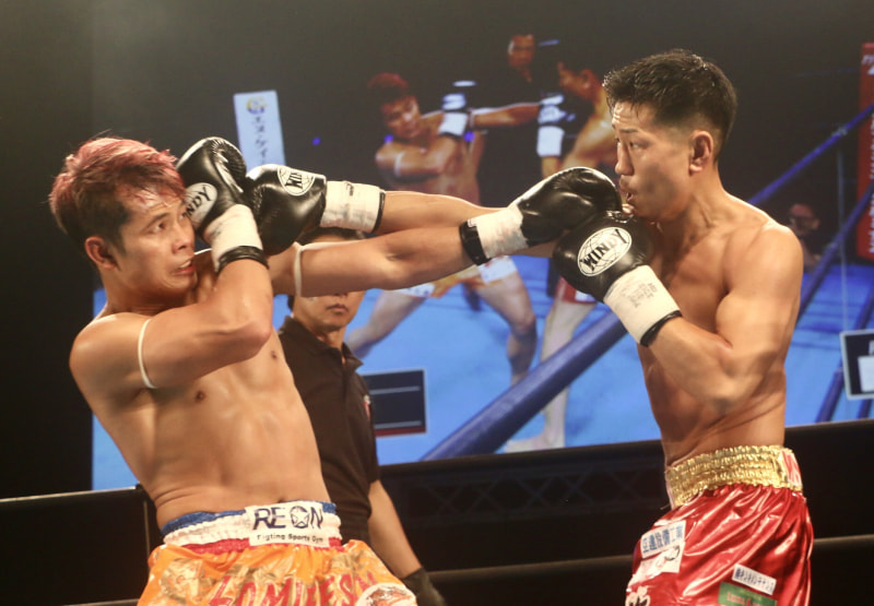 勝次(右)が巧者(左)ロムイーサンに敗れる