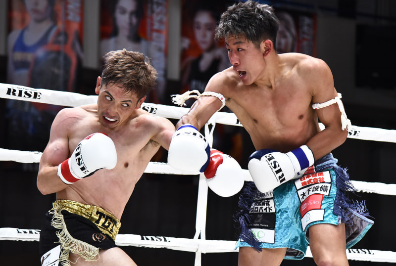 宮崎就斗(左)と激しく打ち合う戸井田大輝(右)