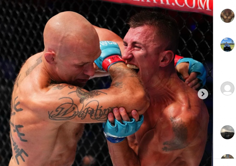 グスタフソン(左)がヒジを炸裂!KO勝利でUFC契約を獲得@UFC