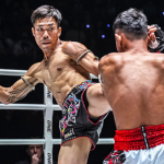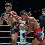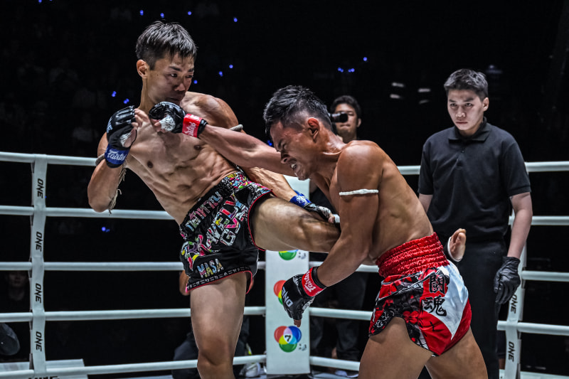 Masa Bravely、脇腹を強打のミドル、ティハが苦悶表情©️ONE