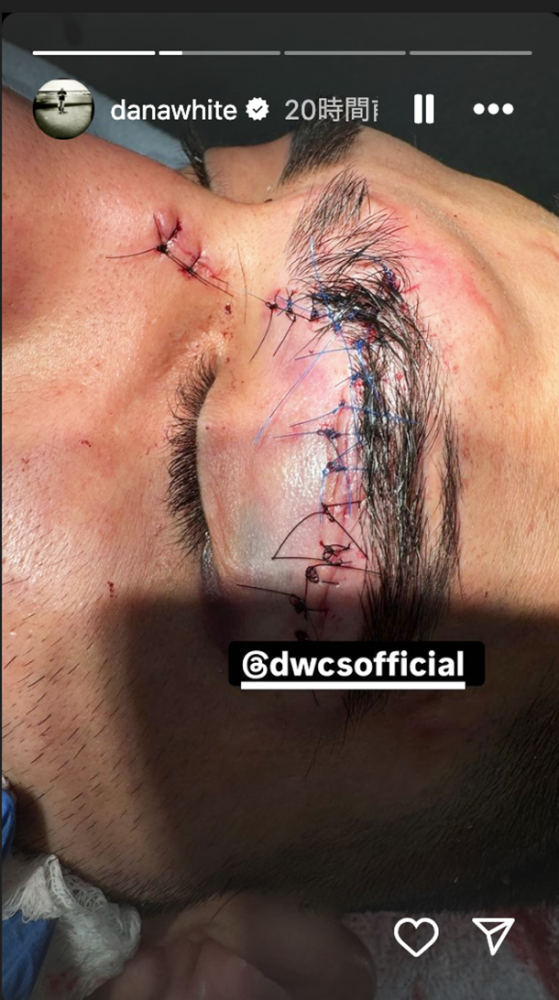 手術後、15針以上を縫った痛々しい姿@danawhiteより