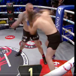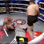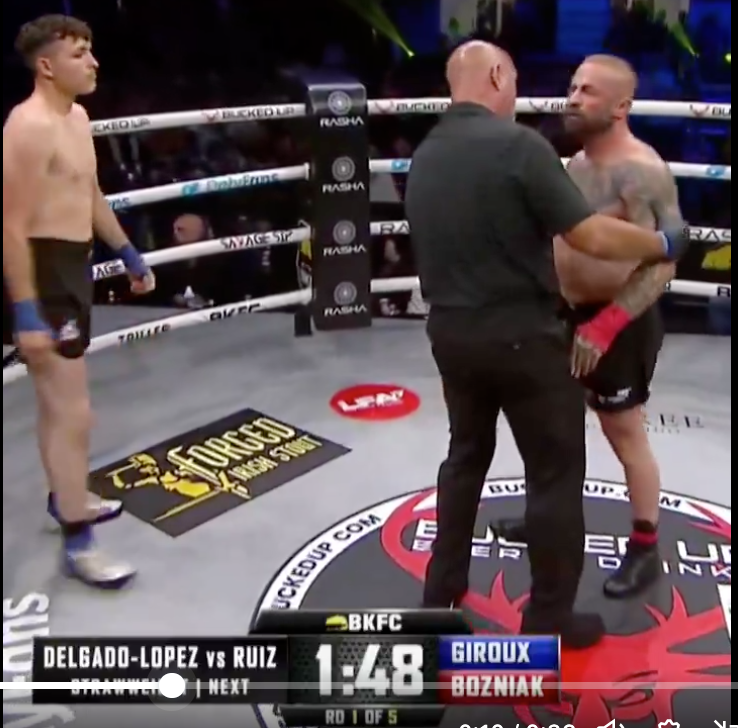 立ち上がって戦えるとアピールするボズニアック@bareknucklefcより