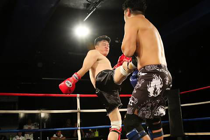 ナミ・イル(左)の右ミドルがザキオ(右)のボディにヒット