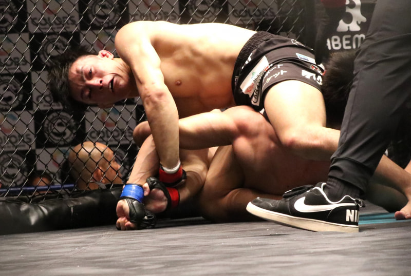 野瀬(右)は人見(右)からアームロックで逆転の一本勝ちを奪った