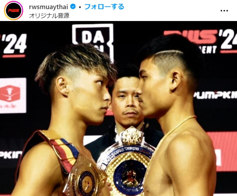 松田(左)は初Vならず=前日計量のフェイスオフ @rwsmuaythai