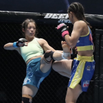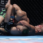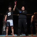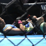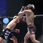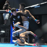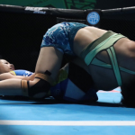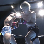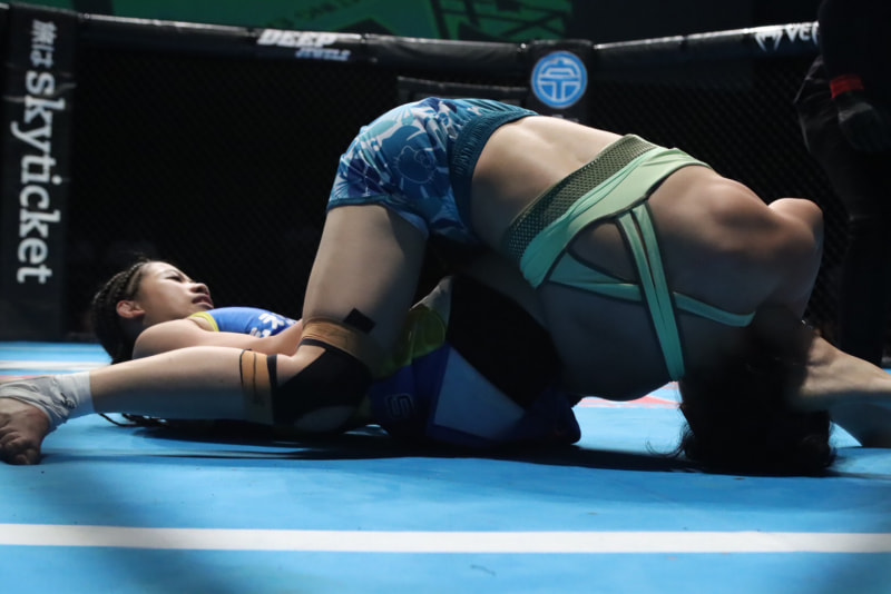 須田(左)が寝技を仕掛ける