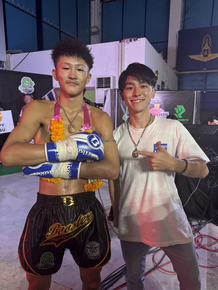 士門(左)を祝福する名高(右)