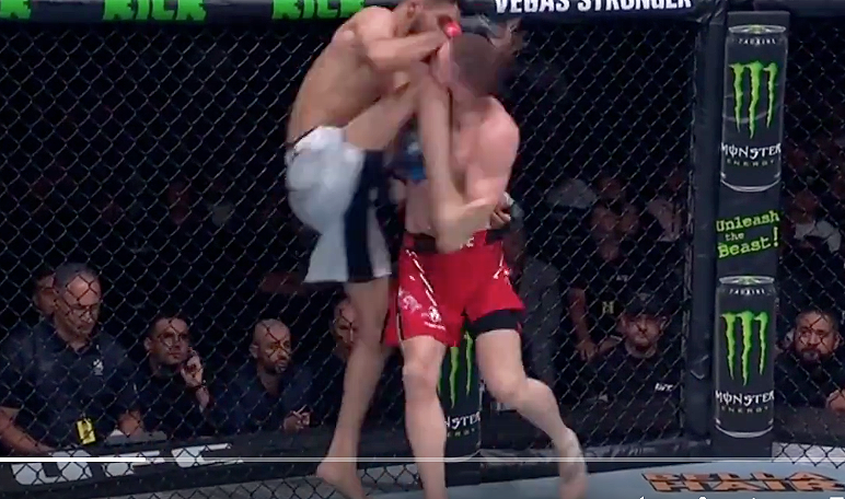 ガラ空きのアゴに強烈なヒザ蹴り@bjpenndotcomより