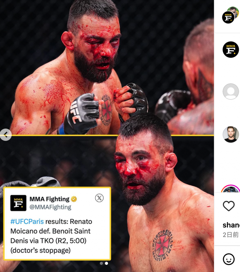 相手のさんでには顔面ボコボコ@renato_moicano_ufcより