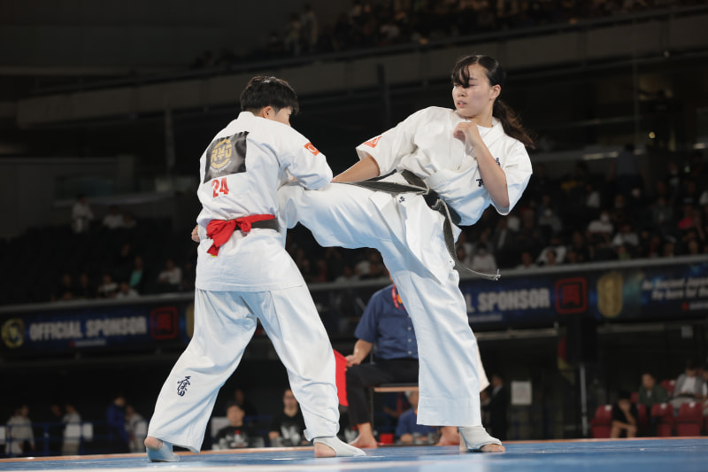 鈴木未紘が相手の攻撃をしっかり見て蹴りを入れる