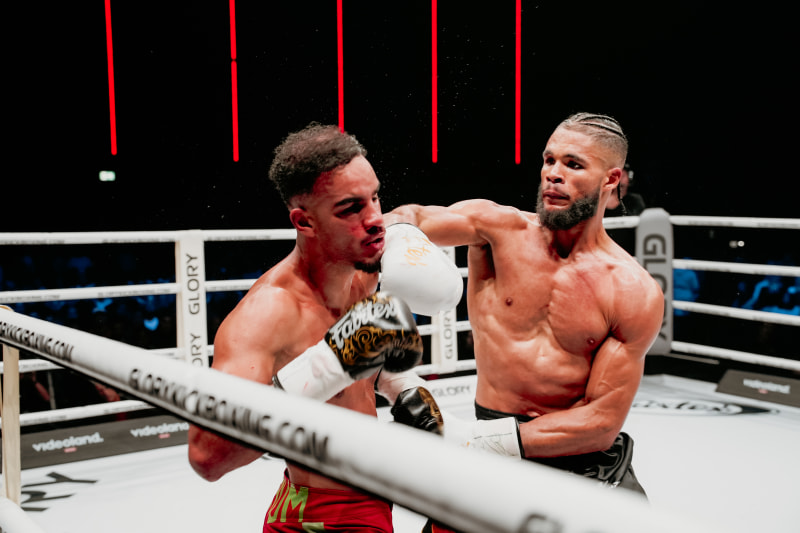 クワジのパンチがベスタティを襲う©️GLORY