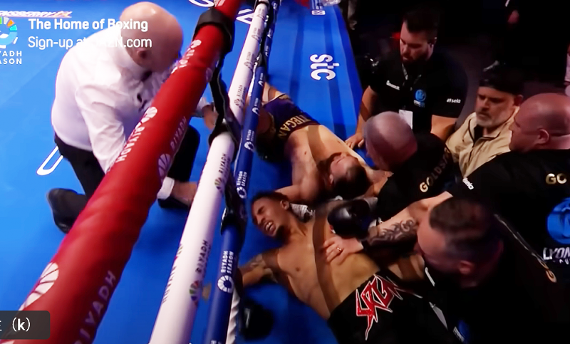 苦悶の表情を浮かべるウィテカー@daznboxingより