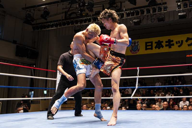 ヒザ蹴りを突き刺す勇志©NKB Taku Seike