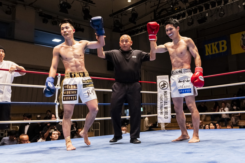 棚橋賢二郎(右)と蒔田亮(左)が急遽ガチエキシを行った©NKB Taku Seike