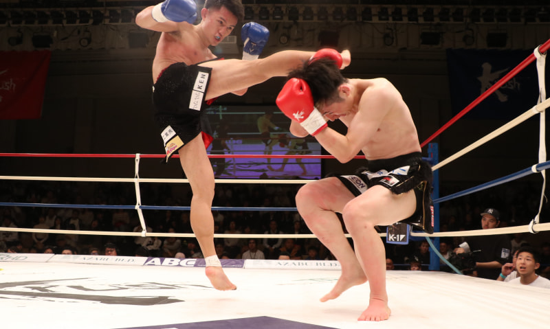 林(左)は、右ハイキックで心直をKOした